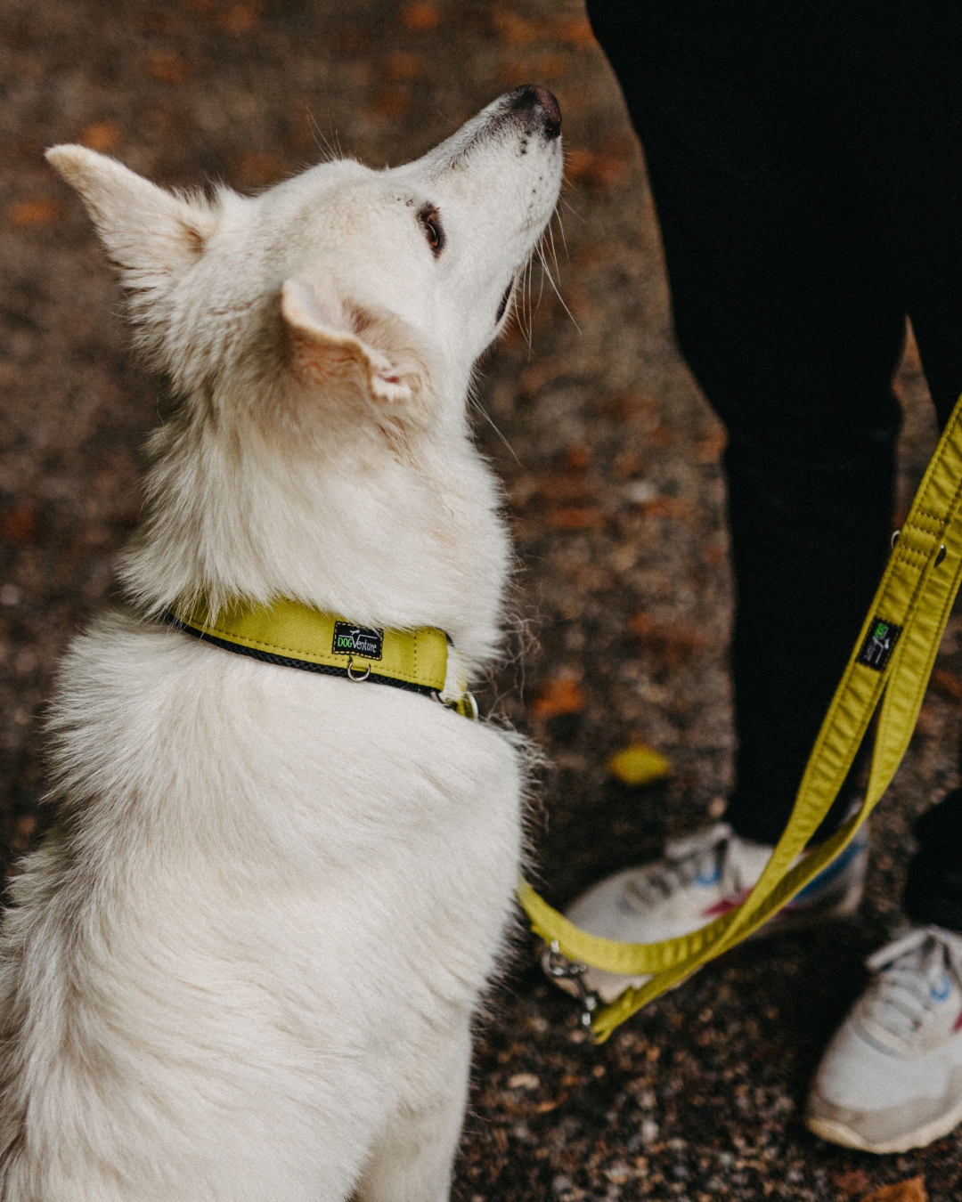 Obroża półzaciskowa delikatnie dopasowuje się do szyi psa – nie zsuwając się, ale też nie uciskając, zapewniając bezpieczeństwo i komfort.